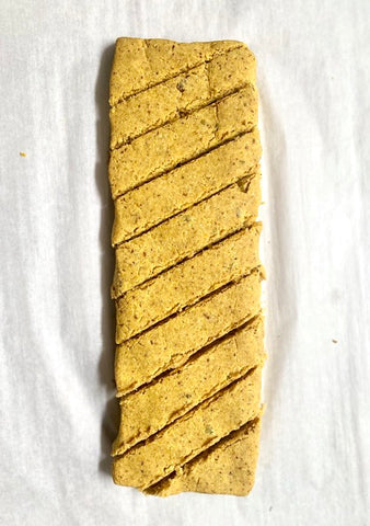 12. Remove from the oven and let cool. The barkscotti should be dry by this point and have a more crumbly texture.  If you want it to be harder for your dog and have it last longer, you can bake for an additional 20 minutes to remove more moisture from the barkscotti.