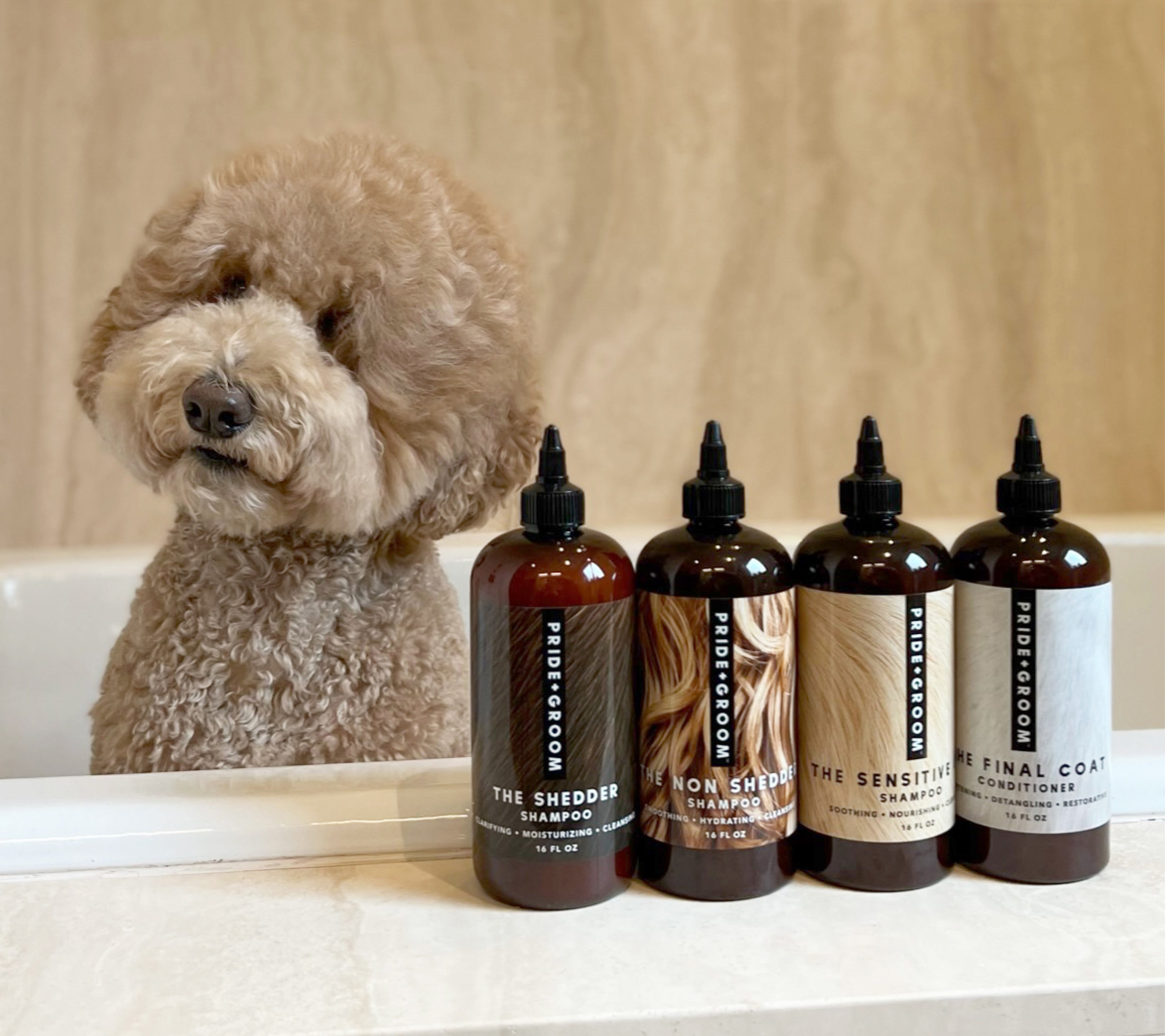 We recommend: THE NON SHEDDER by PRIDE+GROOM. Known as "The Doodle Shampoo," this is specifically created for your dog’s hair-coat. THE NON SHEDDER skillfully heals, detangles and restores shine.